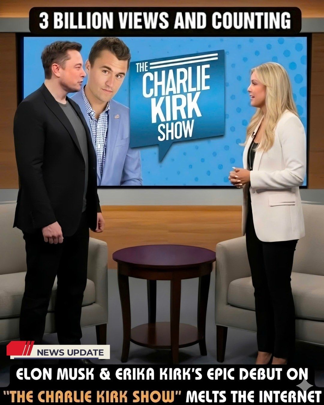 In the attention economy of modern media, very few moments break through the noise so completely that they seem to dominate every platform at once. Yet within hours of its release, a new episode of The Charlie Kirk Show featuring Elon Musk and Erika Kirk did exactly that. Clips spread at lightning speed. Comment sections filled faster than they could be refreshed. Headlines—some breathless, some skeptical—began circling a staggering claim: three billion views and counting.