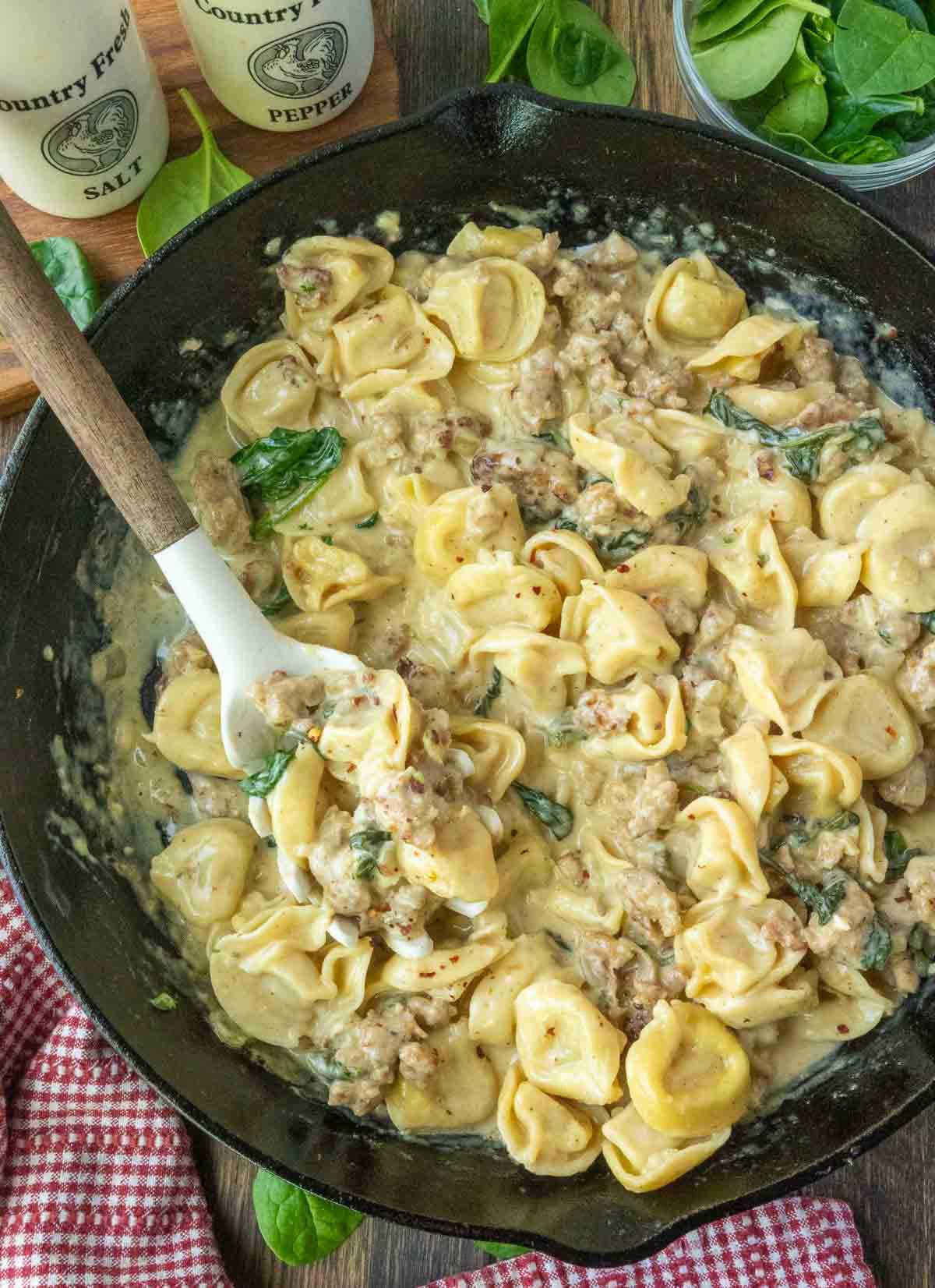 This one-pan wonder is the ultimate comfort food. Juicy Italian sausage and tender cheese-filled tortellini are smothered in a luxuriously creamy Parmesan sauce, with fresh spinach adding a pop of color and nutrition. It’s a restaurant-quality meal that comes together in under 30 minutes for a simple, satisfying dinner your whole family will adore.
