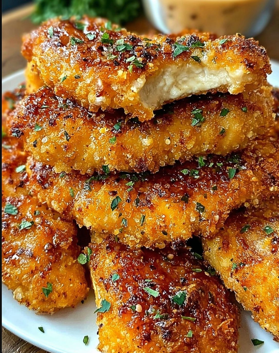 – Boneless, skinless chicken tenders – All-purpose flour – Eggs – Panko breadcrumbs – Parmesan cheese – Garlic powder – Onion powder – Paprika – Salt and pepper – Cooking oil (for frying or baking)