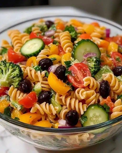 Dive into a burst of vibrant colors and fresh flavors with this Mediterranean Rainbow Pasta Salad! Perfect for a quick meal or a side dish, this recipe combines tender pasta, crisp vegetables, tangy feta, and a zesty dressing for a refreshing and satisfying dish.